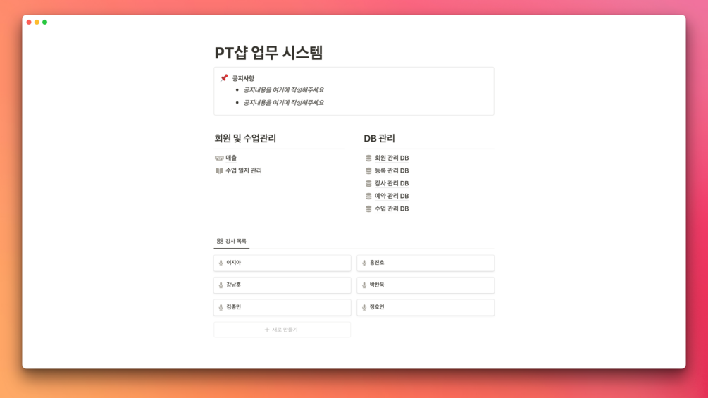 피트니스, 필라테스, PT샵을 위한 종합 관리 시스템