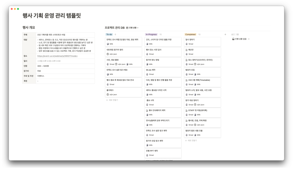 행사 기획/운영 관리 템플릿