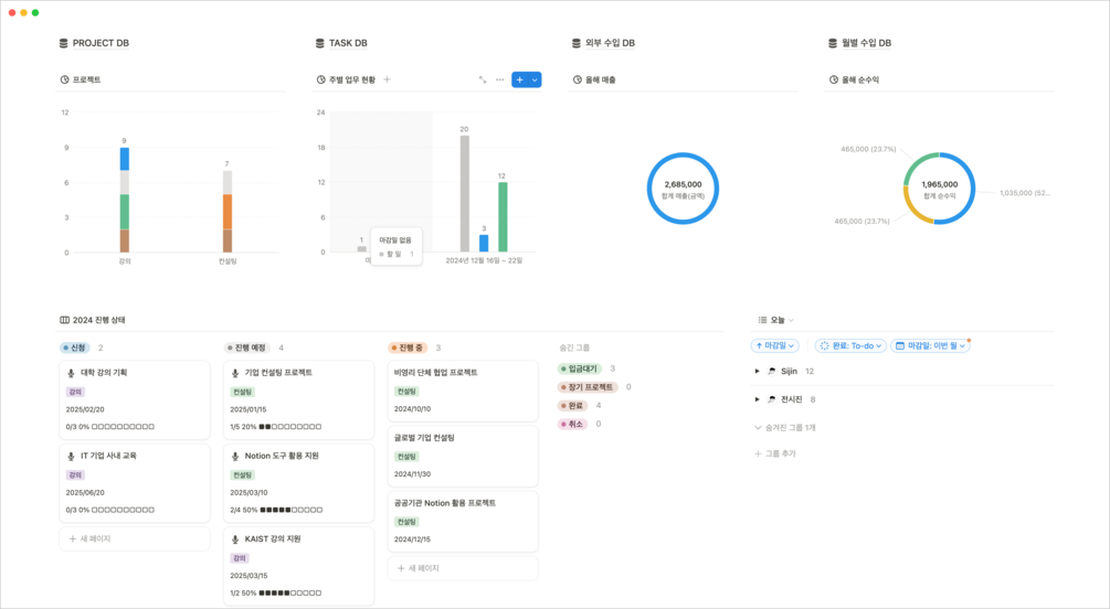 사실, 제가 관리하는 업무 관리이기도 해요. 오랫동안 프로젝트 관리와 할 일 관리 페이지를 다양하게 만들어왔고 소개도 했었죠.