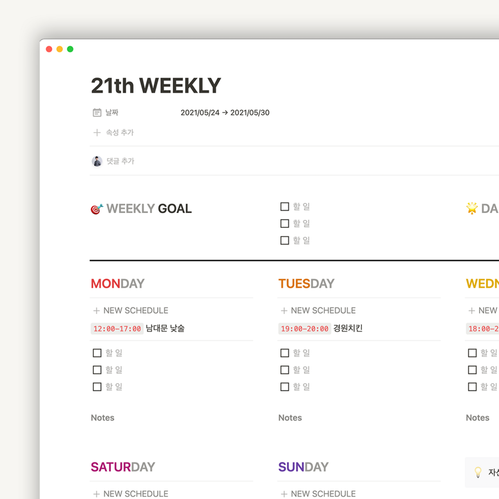 WEEKLY PLANNER (노션 주간 할 일 관리 템플릿)