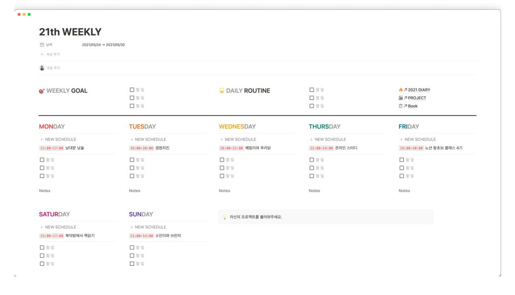 노션 주간 할 일 관리 템플릿 사용 후기