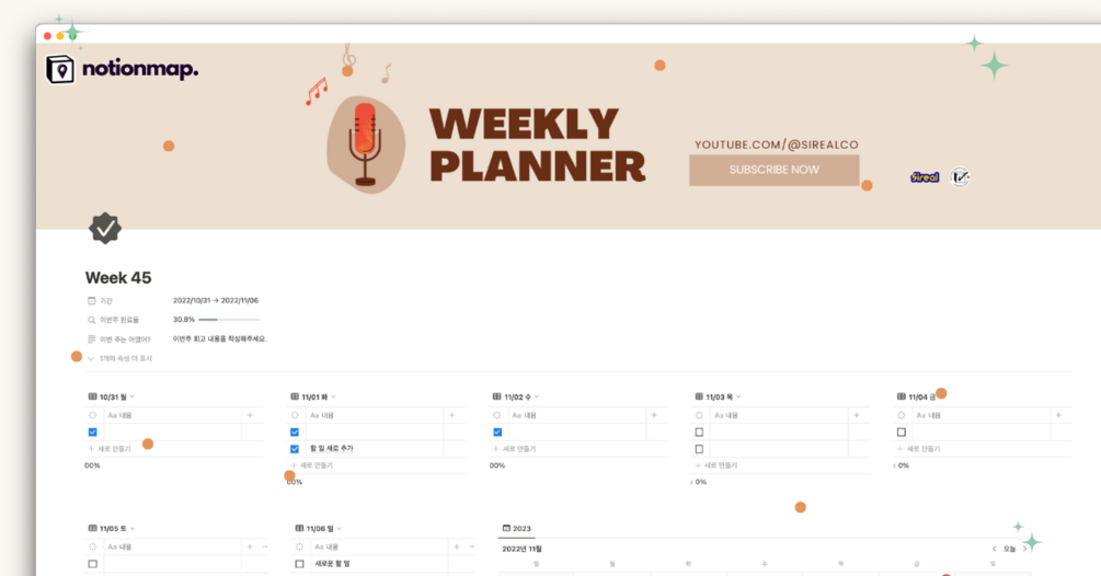 WEEKLY PLANNER (노션 주간 할 일 관리 템플릿)